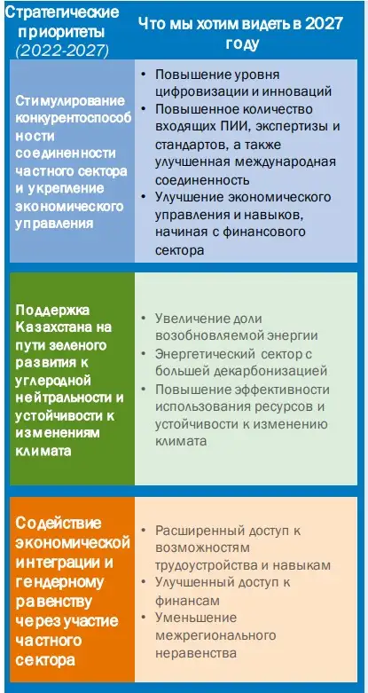 Какие же моменты в развитии Казахстана руководство ЕБРР считают наиболее важными? Для того, чтобы ответить на этот вопрос, необходимо заглянуть в "Страновую стратегию ЕБРР по Казахстану с 2022 по 2027 год", принятую советом директоров банка два года назад.