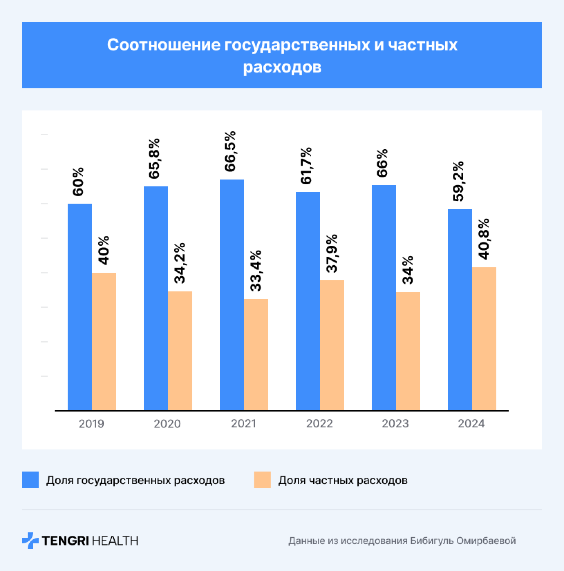 Как отмечает Бибигуль Омирбекова, это не значит, что проблемы решены. Очень важно, сколько денег на лечение тратят сами пациенты. Это один из ключевых показателей, который отражает проблемы в системе здравоохранения и влияет на её устойчивость.