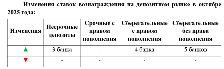 За октябрь ставку вознаграждения по несрочным вкладам подняли три банка из 18: