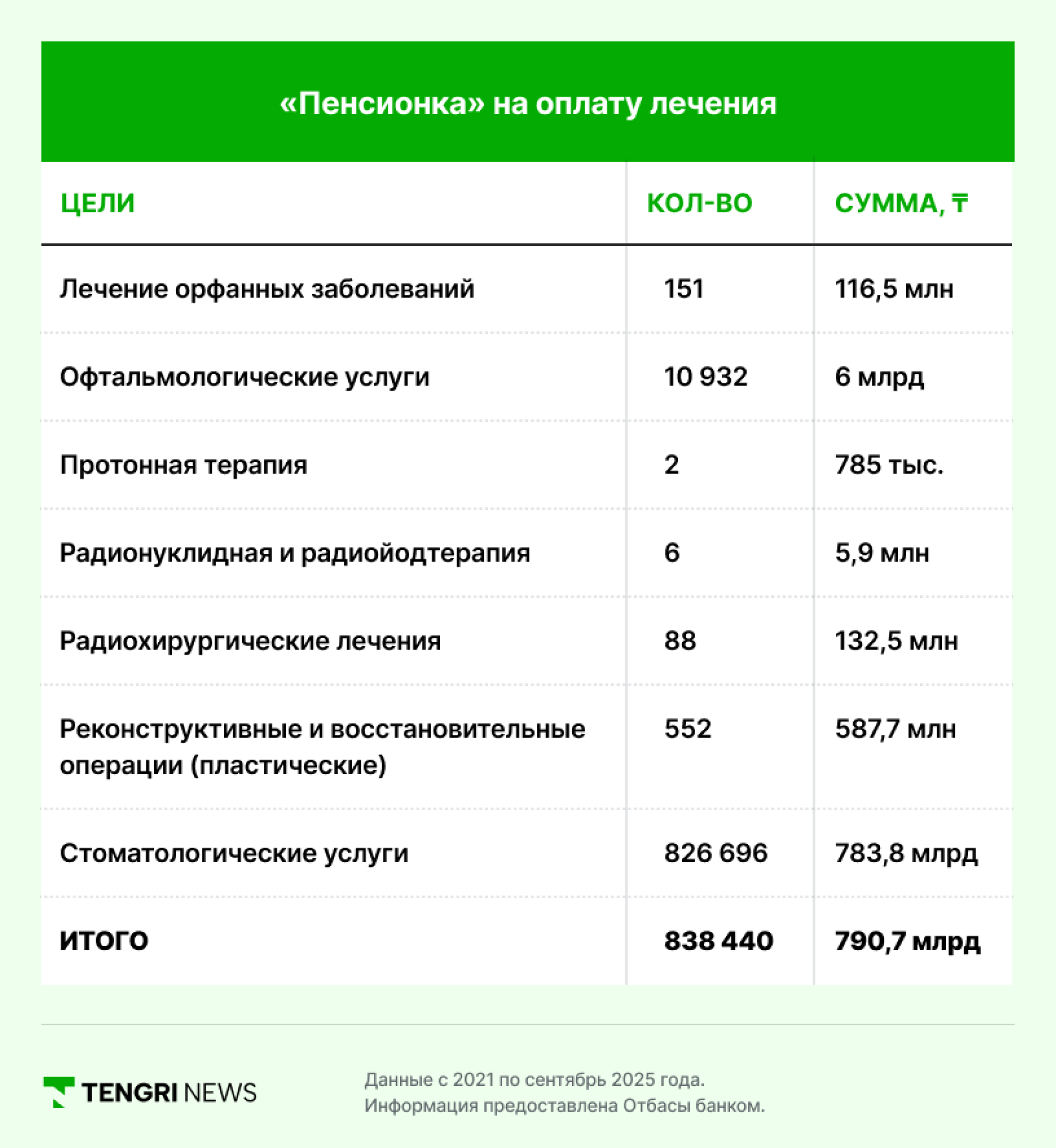 На оплату лечения (запросить деньги можно было не только на стоматологию) — порядка 790 миллиардов тенге. Из них 784 миллиарда получили именно стоматологи. И, как мы теперь знаем, почти четвёртая часть этих денег засветилась в мошеннических схемах.
