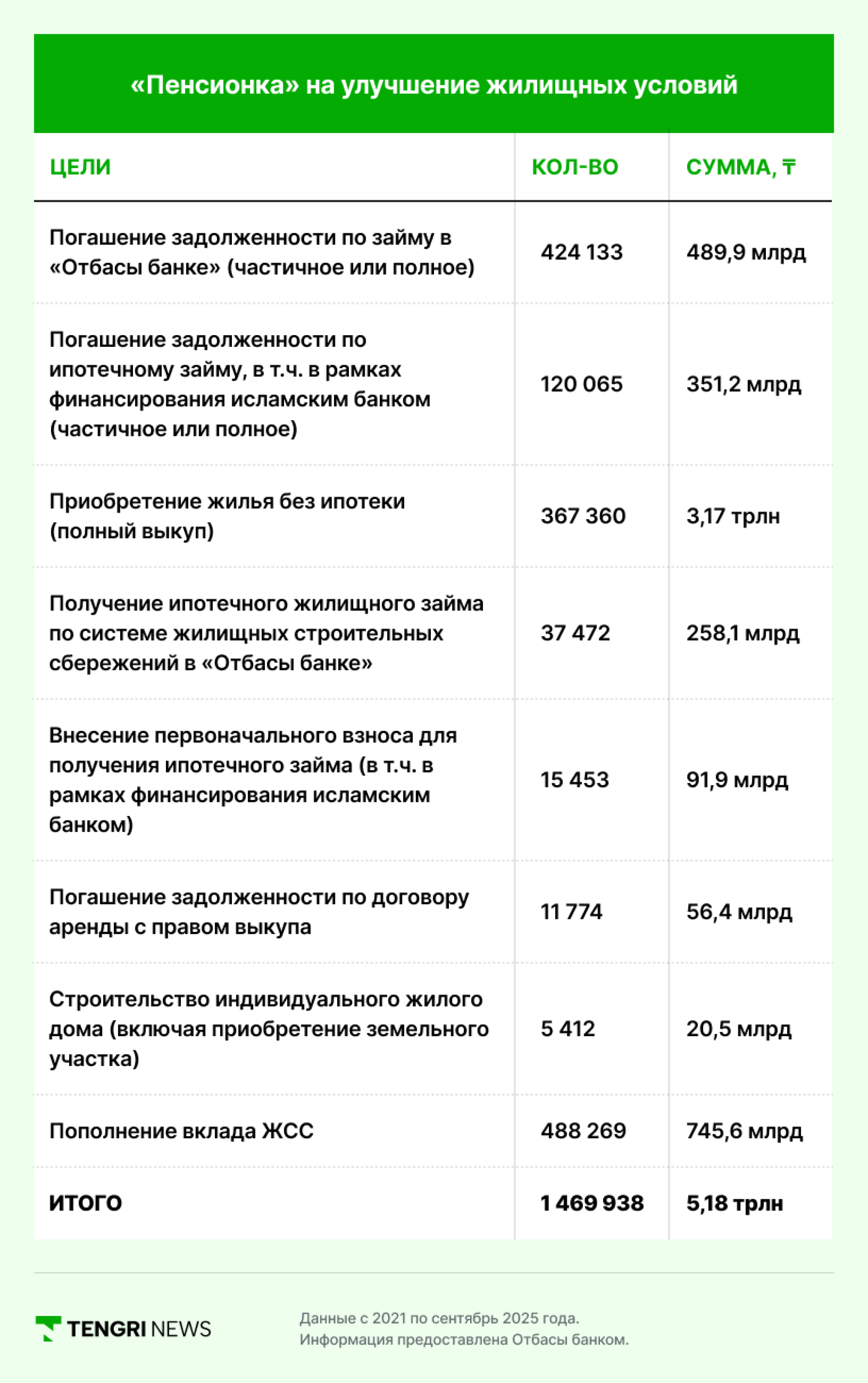В "Отбасы банке" нам рассказали, что на улучшение жилищных условий казахстанцы вывели из ЕНПФ более 5,18 триллиона тенге.