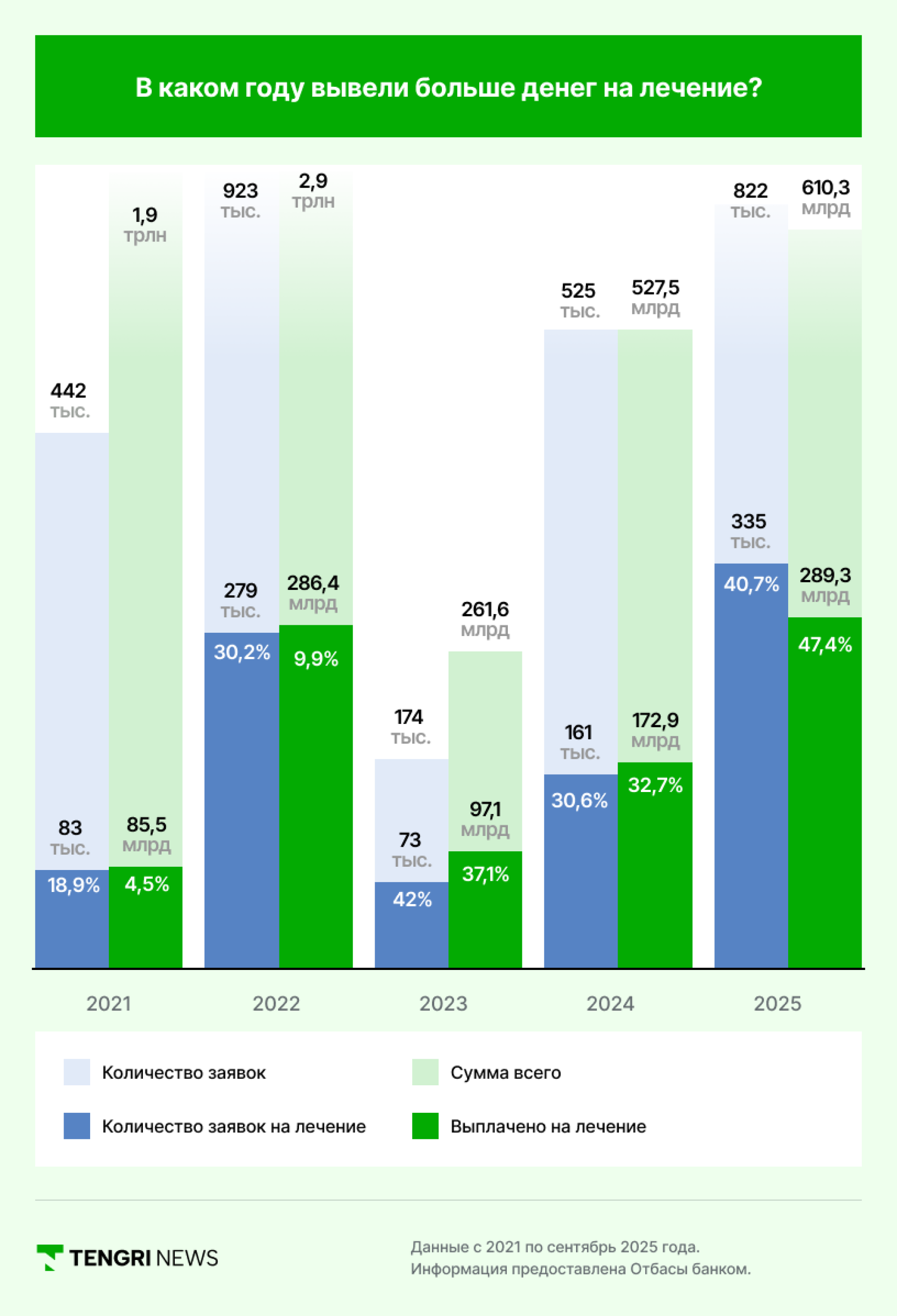 В 2022 году на лечение вывели 286,4 миллиарда тенге — это почти столько же, сколько за четыре (!) месяца 2025 года. Напомню, что с января до конца апреля действовал мораторий на оплату стоматологии, а данные, о которых идёт речь, обнародовали в конце августа.