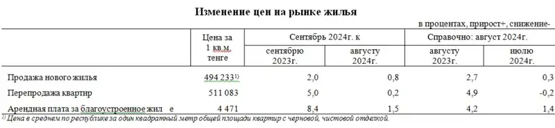 По данным Бюро национальной статистики, за год (сентябрь 2024 года к сентябрю 2023 года) цены на перепродажу квартир вторичного рынка повысились на 5%, продажи нового жилья – на 2%, сообщает zakon.kz.