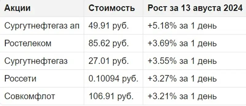 Что касается российских акций, то, по мнению Xvestor, индекс Московской биржи неожиданно пошел в рост. Многие компании из РФ сильно выросли в капитализации. По данным на 13 августа 2024 года, к ним стоит обратиться в первую очередь.