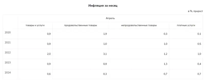 Апрельская инфляция в Казахстане в разные годы. Фото: stat.gov.kz